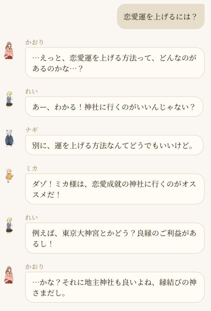 キャラクターが回答してくれます。